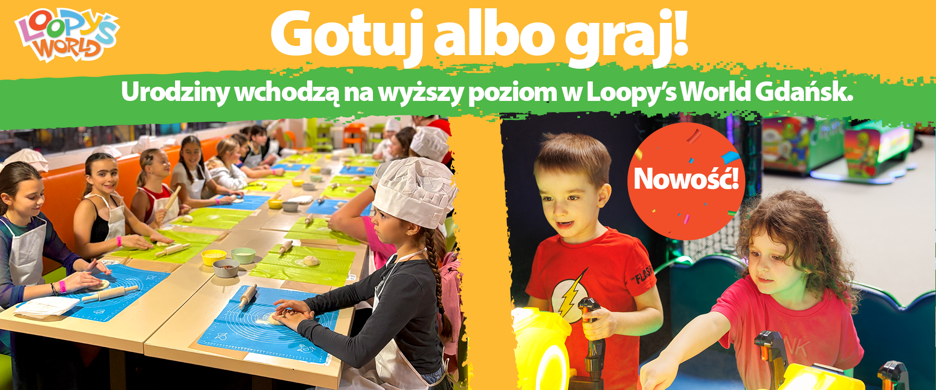 🎂 NOWOŚĆ W LOOPY’S WORLD 🎂 . Szukasz idealnego pomysłu na niezapomniane urodziny? Mamy coś specjalnego! . PAKIET KULINARNY 🍕👩🍳 Dla małych mistrzów kuchni! Wspólne